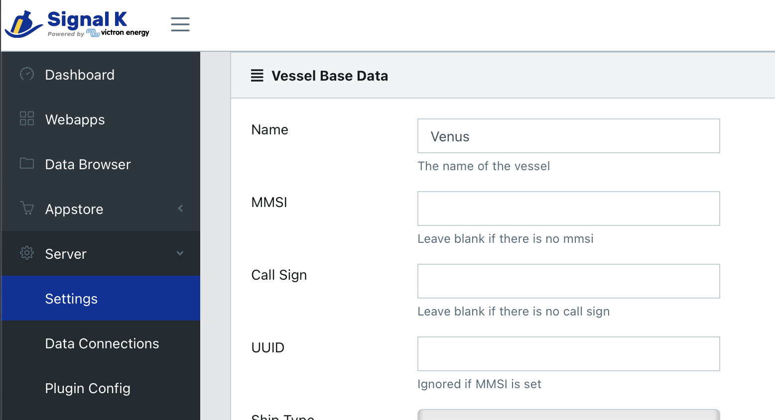 All configuration is done from within the Signal K Server Admin UI. Open the Admin UI in your browser and complete the following steps.